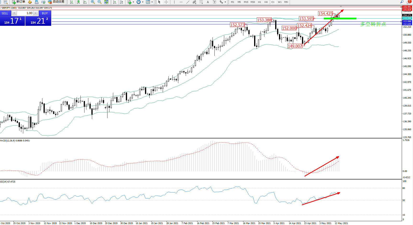 多空转折点:153.595