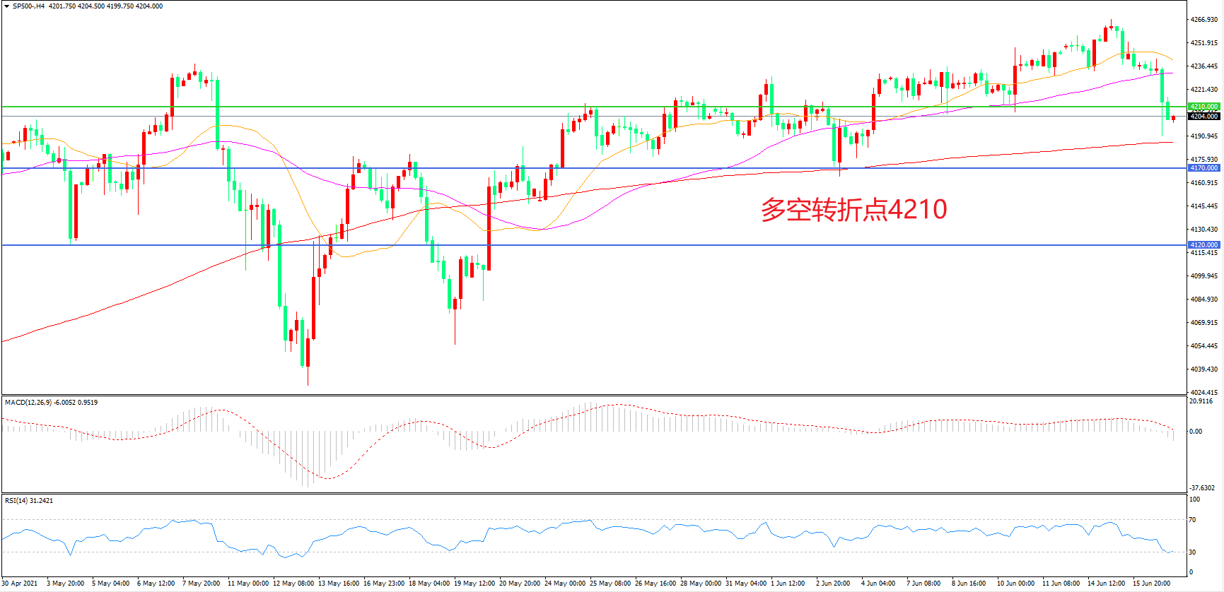周三(6月16日),美联储暗示,加息会比此前预期来得早,缩减QE的阴影再次笼罩,美元和美债收益率跳涨,标普500大幅下挫,收报4202.75点。美联储主席鲍威尔在会后的新闻发布会上承认,本次会议讨论了缩减QE,但并未透露缩减的具体时间,中期来看,美联储未来的缩表和资本从新市场流出的风险值得警惕。