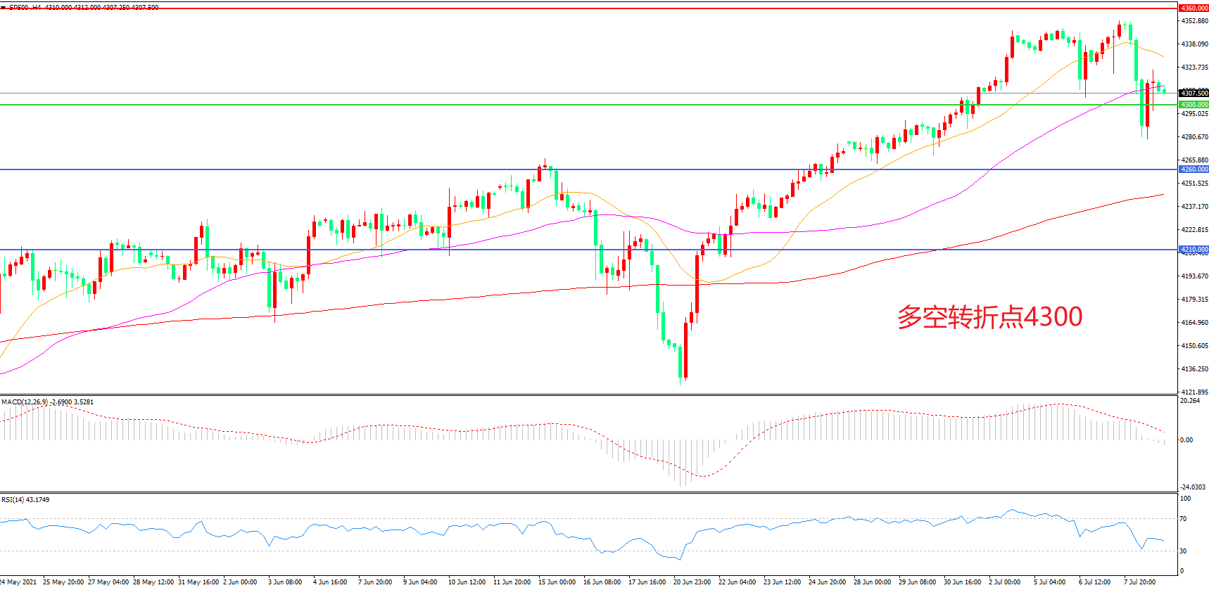 交易策略:在4300.00之上看涨,目标4360.00 4430.00