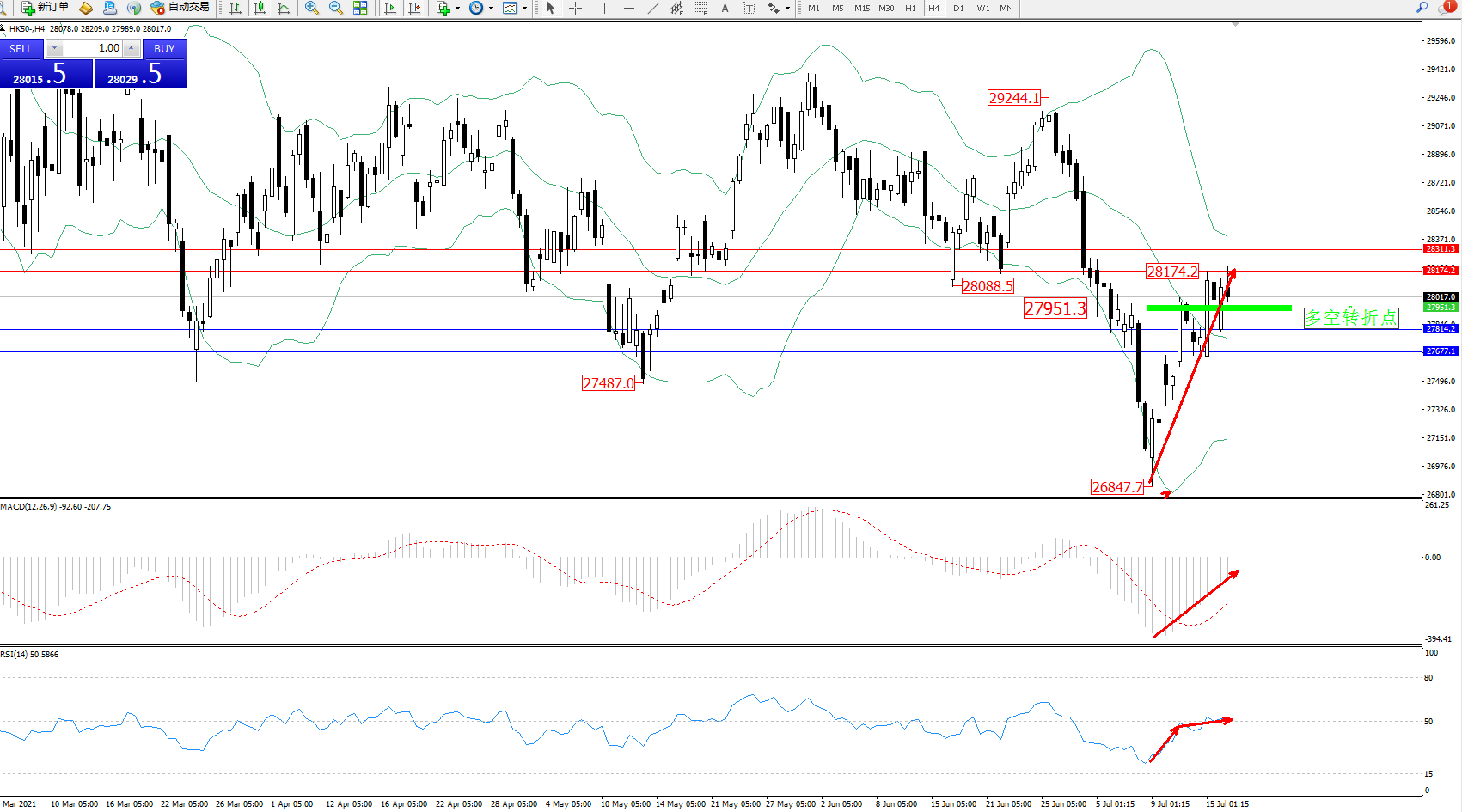 技术点评:低位多头动力强势拉升,突破布林带指标中轨后短暂遇阻再度强势上扬,纠结于中上轨区间震荡中,短期多头或将维持上扬走势,布林带指标呈收口走势持续中,MACD指标处于空头区域低位持续震荡上扬,RSI指标处于空头区域持续震荡上移至50均衡线附近徘徊中;