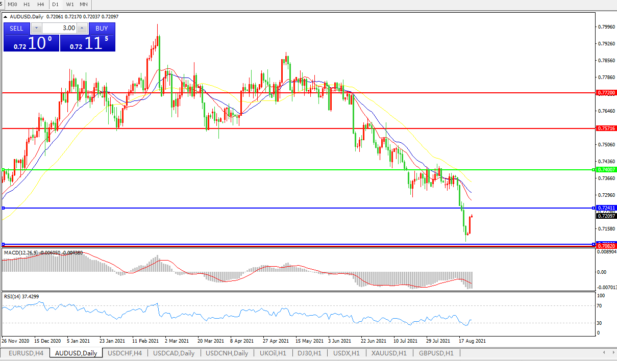 技术面简析:日图均线发散下行,汇价直线反弹,MACD运行于0轴下方但量能快速缩量,RSI反弹,预计汇价大概率将在反弹后进一步下行。