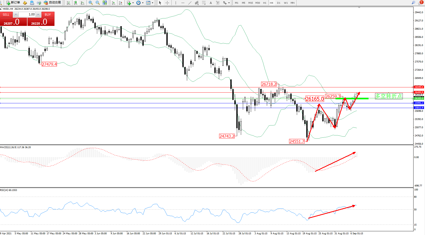 香港恒生指数9月7日(周二)收盘上涨190点,涨幅0.73%,报26353.63点;受科技股走强带动,港股三大指数集体收涨。恒指科技指数涨1.61%报6887点,大型科技股快手大涨超9%表现最佳,美团大涨4%,腾讯升2%,百度、网易、阿里巴巴皆有涨幅;深圳本地股、体育用品股、餐饮股、煤炭股、区块链股现普涨行情,李宁大涨超7%再创历史高价。另一方面,近日反弹的恒大概念股再度下挫,啤酒股、物管股、教育股、内房股、药品股走低明显。今日大市成交额为1448亿港元,南下资金净流入50.05亿港元。香港零售股集体拉升上扬,莎莎国际大涨7%领衔走高,周生生大涨6%,六福集团、利福国际、周大福等涨超2%。9月15日港府将推出“来港易”,内地和澳门的非香港居民经深圳湾口岸及港珠澳大桥口岸来港,可以免除14天隔离。深圳湾口岸及港珠澳大桥口岸每日“来港易”名额各1000个,总共2000名额。