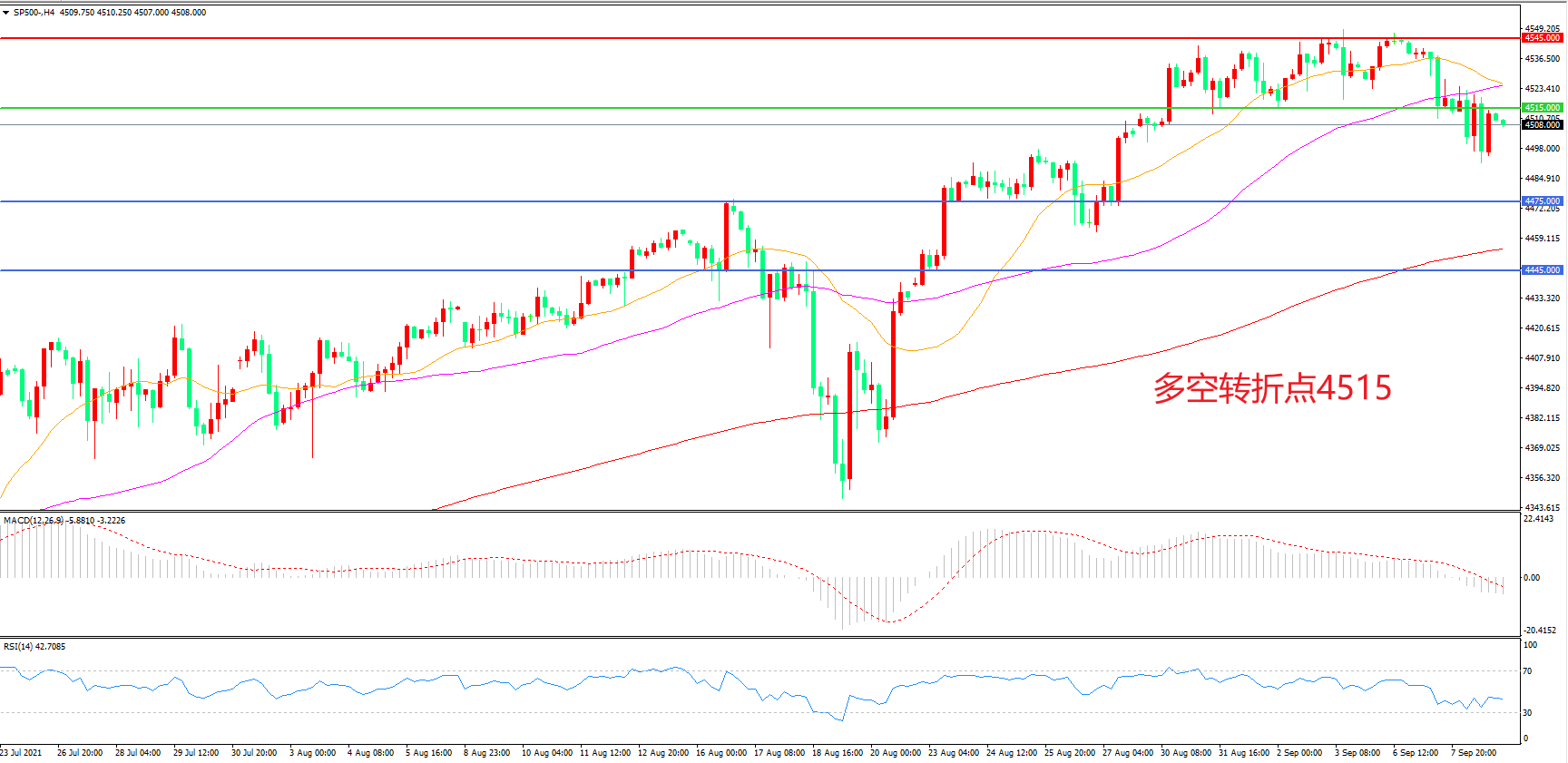 周三(9月8日),市场多空因素交织,美联储最新发布的“褐皮书”对美国整体经济活动的描述小幅下调至“温和增长”, 反映了疫情正在干扰经济活动,而美联储三把手威廉姆斯则在讲话中是否预计今年内Taper的信号,标普500宽幅震荡后收报4509.25点。近期面对新冠变异病毒传播和央行准备减少宽松等经济风险,投资者对高估值的美股越发谨慎,需谨防市场出现大幅调整。