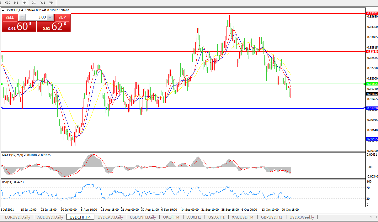 交易策略:0.9180下方看跌,目标0.9120、0.9040