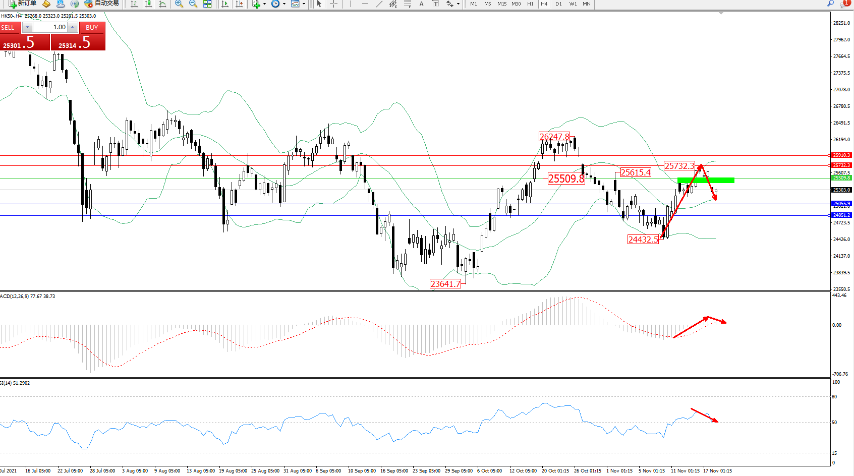 技术点评:低位多头动力强势震荡上扬,高位抵达布林带指标上轨25732位置后遇阻震荡回撤,短期空头动力伺机入场,纠结于布林带指标通道中上轨区间整理,布林带指标呈张口走势后开始收口,MACD指标处于多头区域维持整理徘徊中,RSI指标处于多头区域维持震荡回撤至50均衡线附近整理;