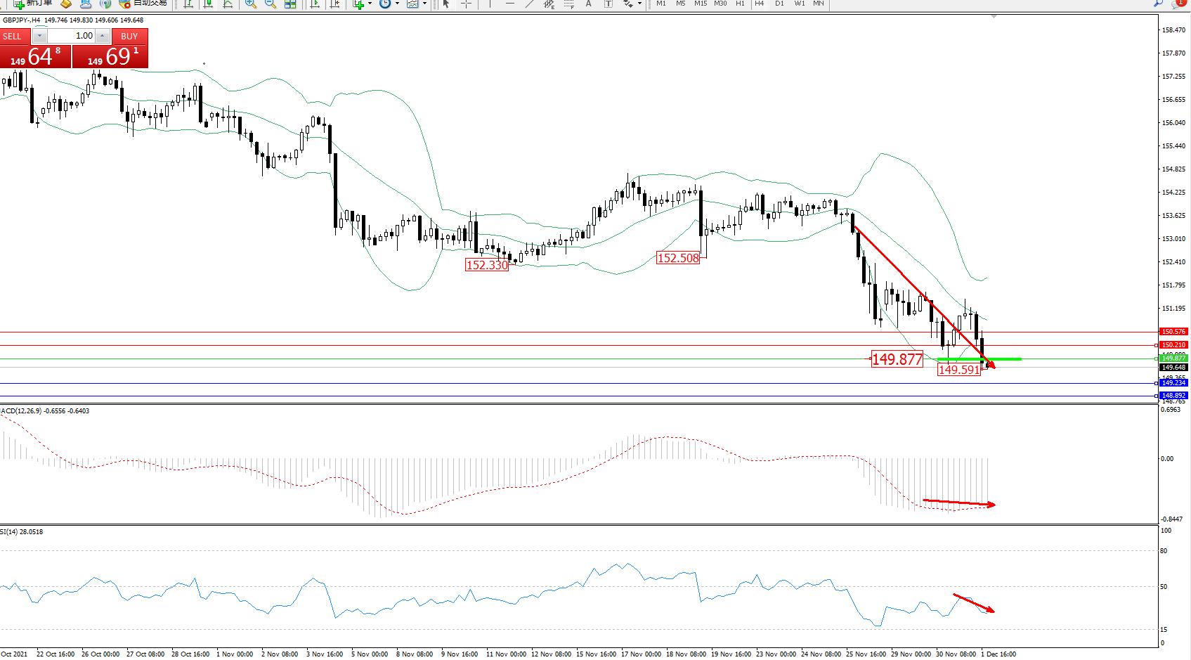技术点评:空头动力延续布林带指标通道中下轨区间持续震荡下行,低位抵达149.591附近震荡后有继续向下移动态势,布林带称收口走势后开始缓慢张口,MACD指标处于空头区域维持整理平移,RSI指标处于空头区域维持震荡中;