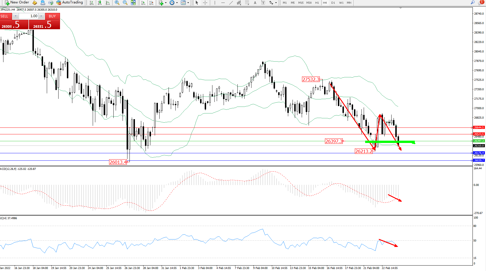 东京证券交易所因天皇诞辰,休市一日。上交易日,日经225指数2月22日(周二)收盘下跌453.37点,跌幅1.68%,报26457.50点。日本首相岸田文雄:不能接受俄罗斯的一系列行动。准备包括制裁措施在内的对俄回应。将收集信息,与G7其他国家保持联系。将密切关注乌克兰局势。俄罗斯的行为违反了明斯克协议。如果俄罗斯“入侵”乌克兰,将进行强烈回应。