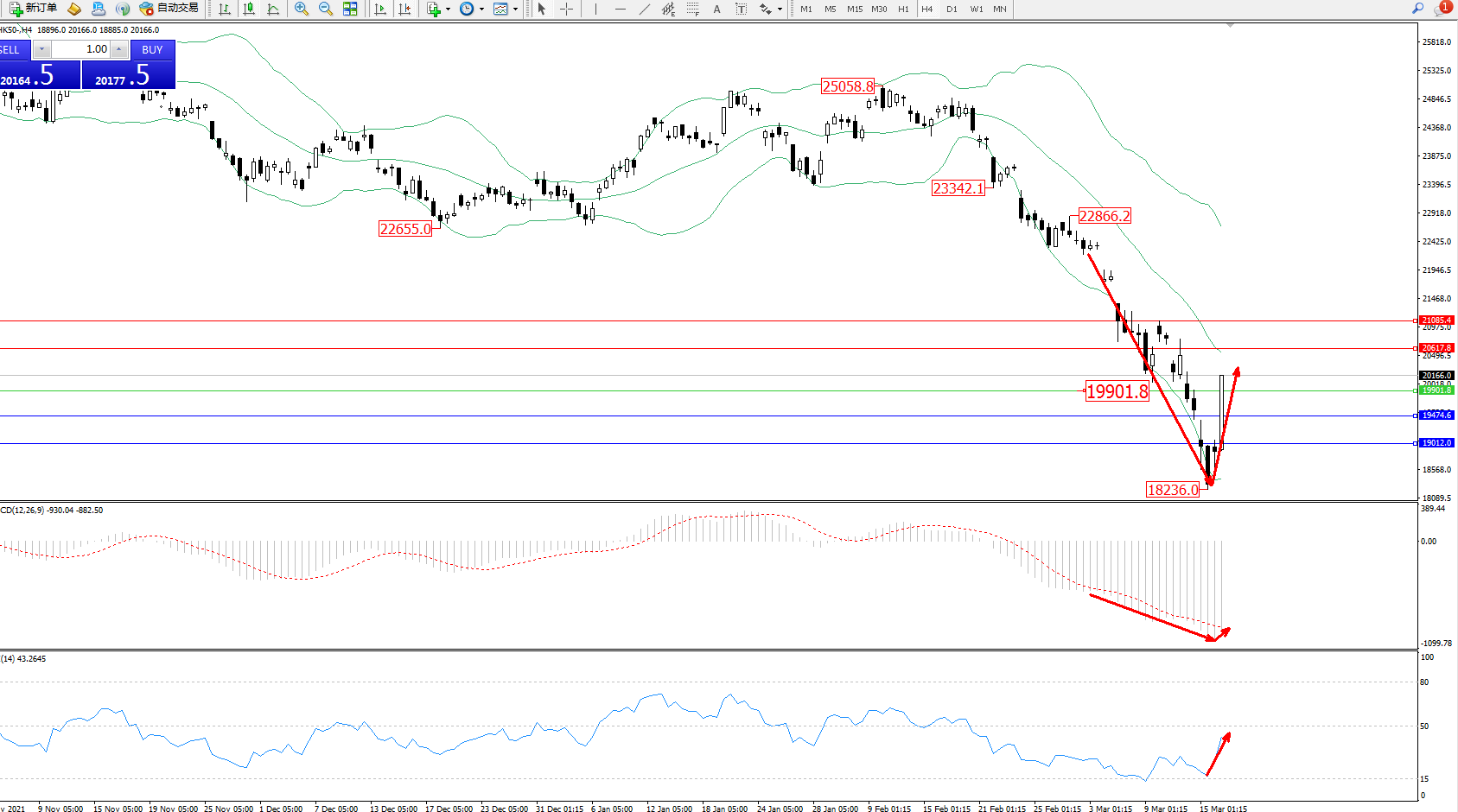 技术点评:空头动力延续布林带指标下轨附近持续下挫,低位抵达18236位置节点后急速反转上移,多头动力伺机入场,不断攀升中,布林带呈向下移动趋势走势后开始有缓慢收口迹象,MACD指标处于空头区域维持震荡下行后,低位开始弱势反转,RSI指标处于空头区域低位震荡急速拉升;