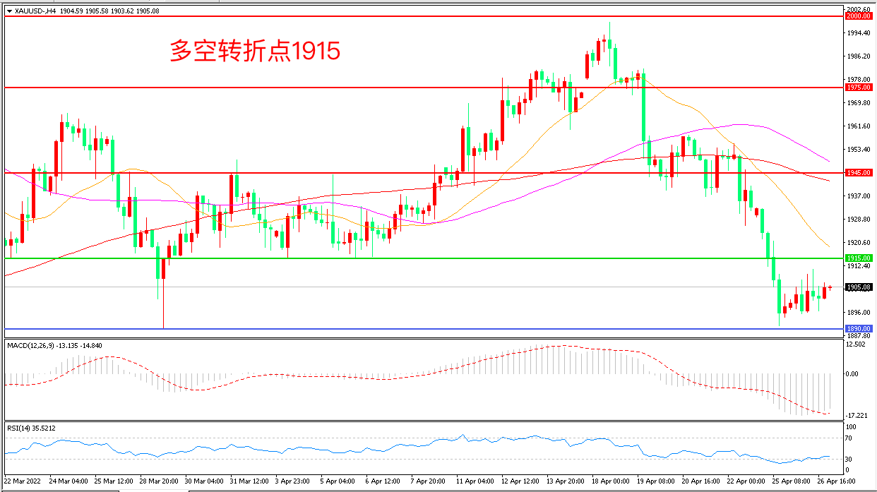 交易策略:在1915.00之下看跌,目标1890.00       1865.00