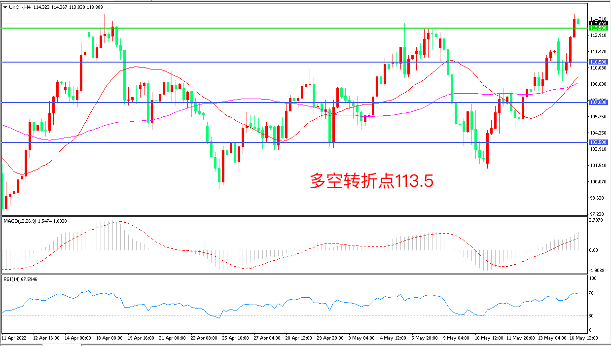 周一(5月16日),有消息称欧盟接近达成禁运俄油协议,如果最终该消息落地将在进一步引发供应端紧张和全球“抢油”大战,布伦特原油再度飙升,收报113.92美元/桶。中期看供应紧张仍是市场主旋律,投资者会继续在地缘因素主导的能源危机与宏观层面压力之间的博弈,油价延续强势概率较大。