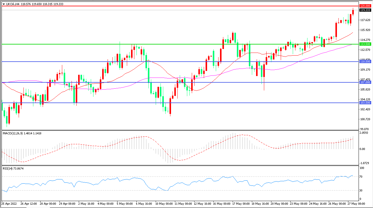 上周五(5月27日),伊朗突然宣布扣押希腊油轮,全球能源危机进一步发酵,布伦特原油大幅上行,收报119.33美元/桶。随着北半球夏季到来,需求渐入旺季,成品油价格持续上涨推动了美国对欧洲及南美地区的出口内库存吃紧,多重利好支撑下,油价仍以上行为主。