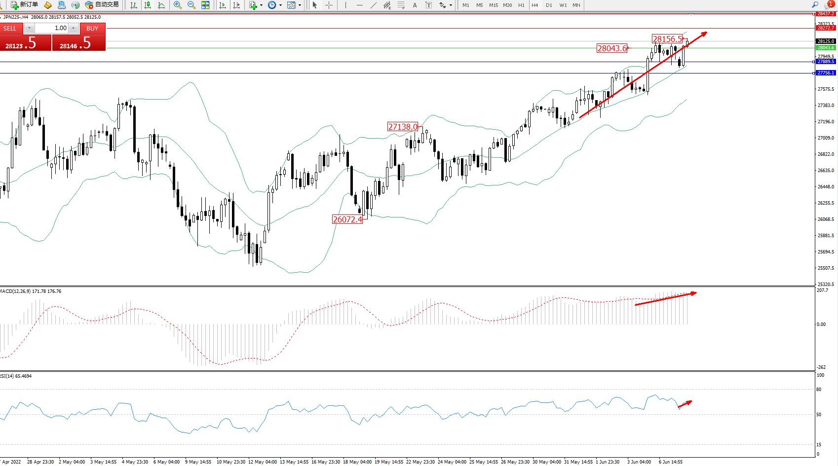 技术点评:多头动力延续布林带指标通道中上轨区间持续震荡上扬,高位抵达28156附近节点后有继续拉升态势,布林带指标呈上行趋势走势态势良好,MACD指标处于多头区域维持整理缓慢上移,RSI指标处于多头区域维持窄幅整理中;