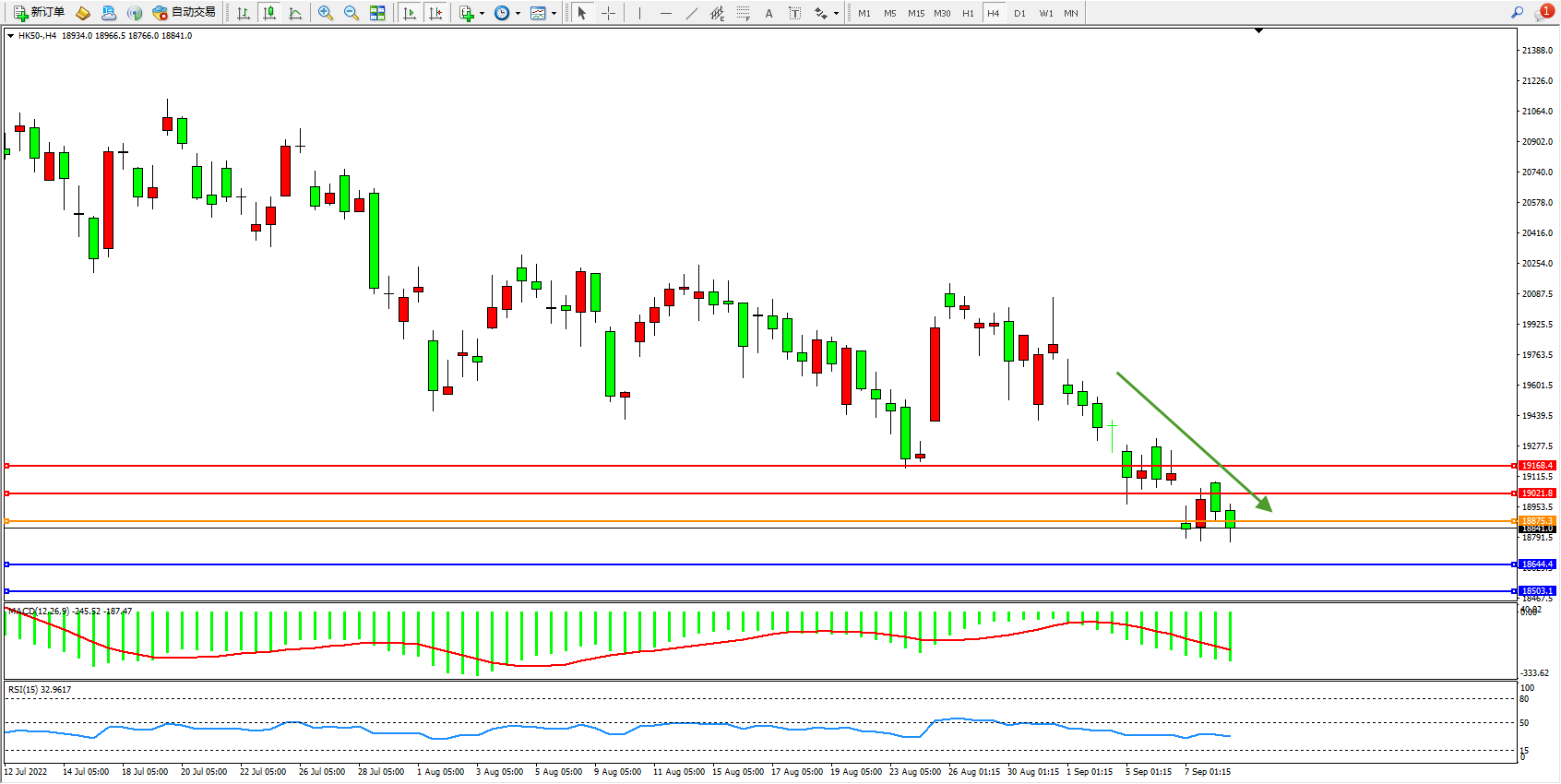 香港恒生指数9月8日(周四)收盘下跌189.68点,跌幅1.0%,报18854.62点;港股三大指数午后加速下行,恒指跌1%失守19000点,国指跌1.18%,二者录得6连跌,恒生科技指数跌1%,亦跌破4000点整数关,三大指数皆刷新阶段低价。政策利好叠加机构唱好,电力股继续延续上涨行情,半导体股、家电股、航空股表现活跃,上海复旦创历史新高。南下资金逆势净流入12.99亿港元,大市成交额缩量至800亿港元。