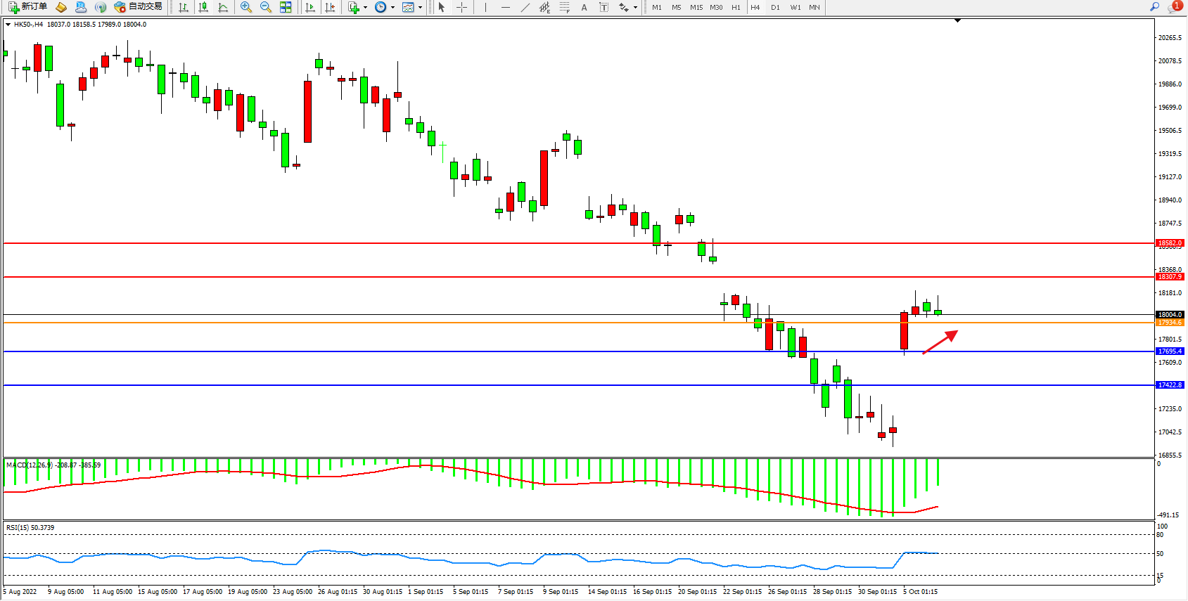 香港恒生指数10月6日(周四)收盘下跌75.82点,跌幅0.42%,报18012.15点;港股午后拉升,翻红后再度走低,恒生科技指数跌0.67%,国企指数跌0.63%。航空股午后进一步走高,中国国航、中国南方航空涨超6%,中国东方航空涨5.73%;节假日概念股维持强劲走势,携程集团涨4.51%,复星旅游文化涨3.52%,海底捞涨2.81%,同程旅行、百威亚太等涨超1%。
