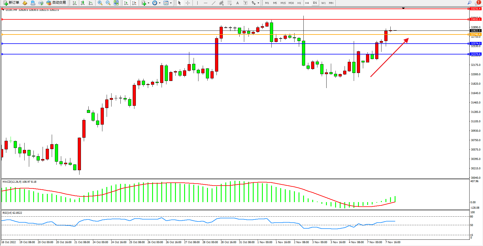 道琼斯指数11月7日(周一)收盘上涨423.78点,涨幅1.31%,报32827.00点;据美国CNN电视台援引3名消息人士报道,美国前总统特朗普在积极讨论于当地时间7日晚宣布参加2024年总统选举的可能性。