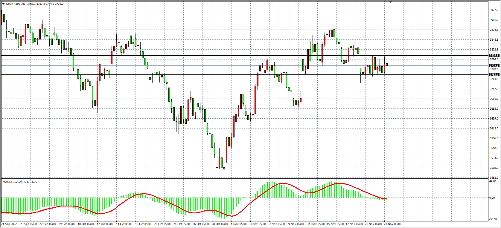 沪深300:3755-3800区间盘整