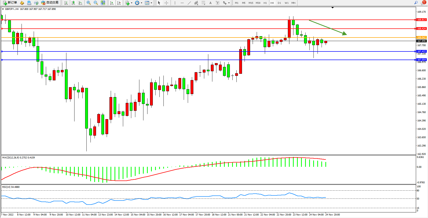 英镑兑日圆维持167.890附近震荡,英国正步入一场长期但轻微的衰退,消费者面临长期生活成本危机,但英国央行仍将继续加息以对抗通胀。