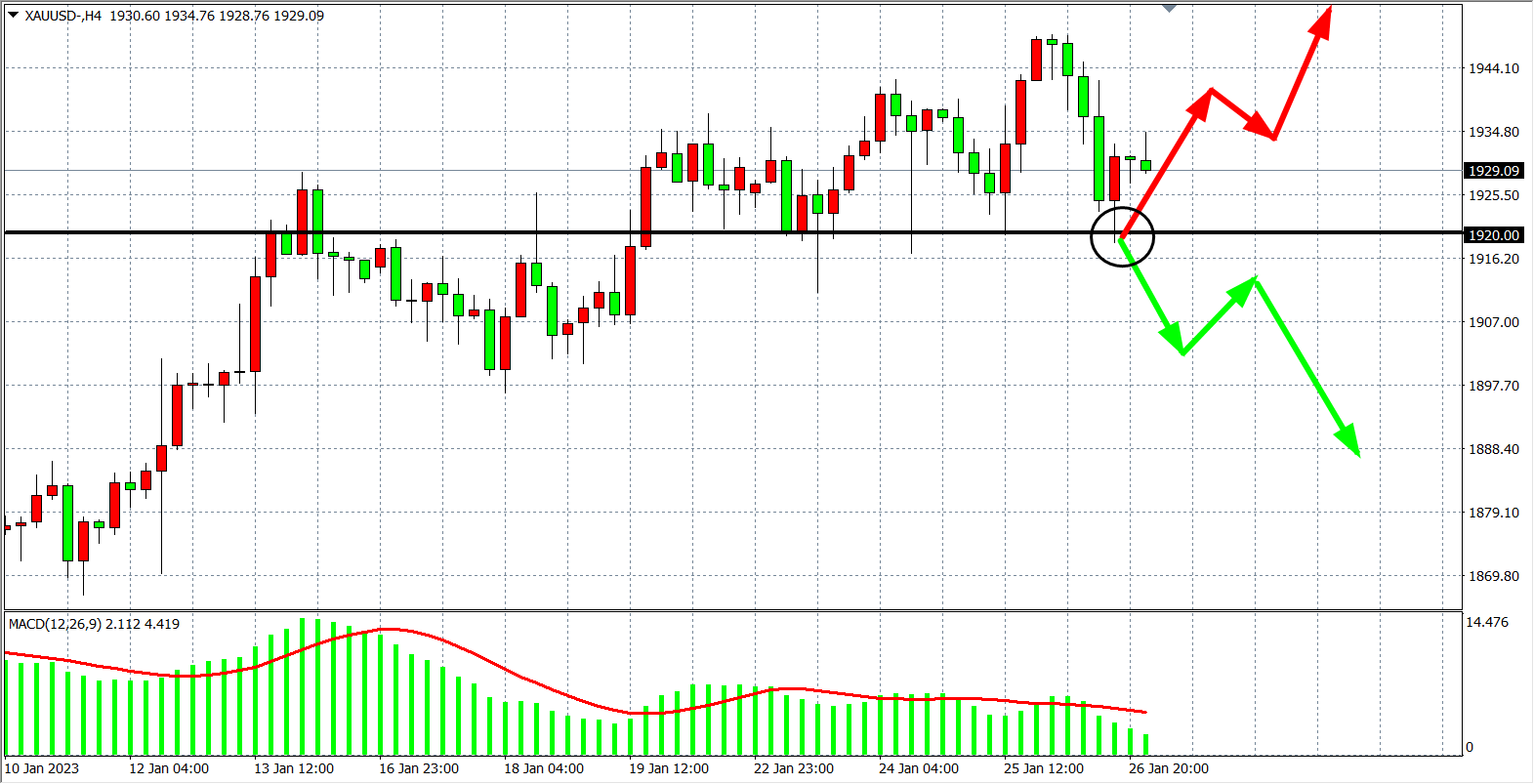 备选策略:在1920.00 之下看跌,目标1900.00 1880.00