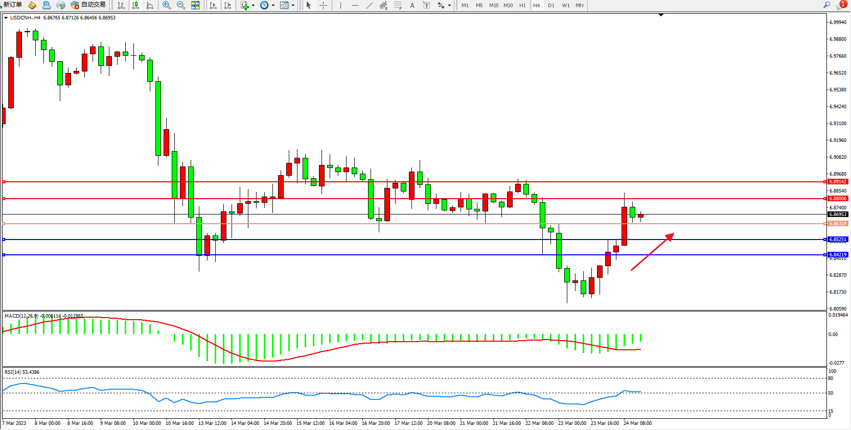 交易策略:6.86319上方看涨,目标6.88006 6.89142