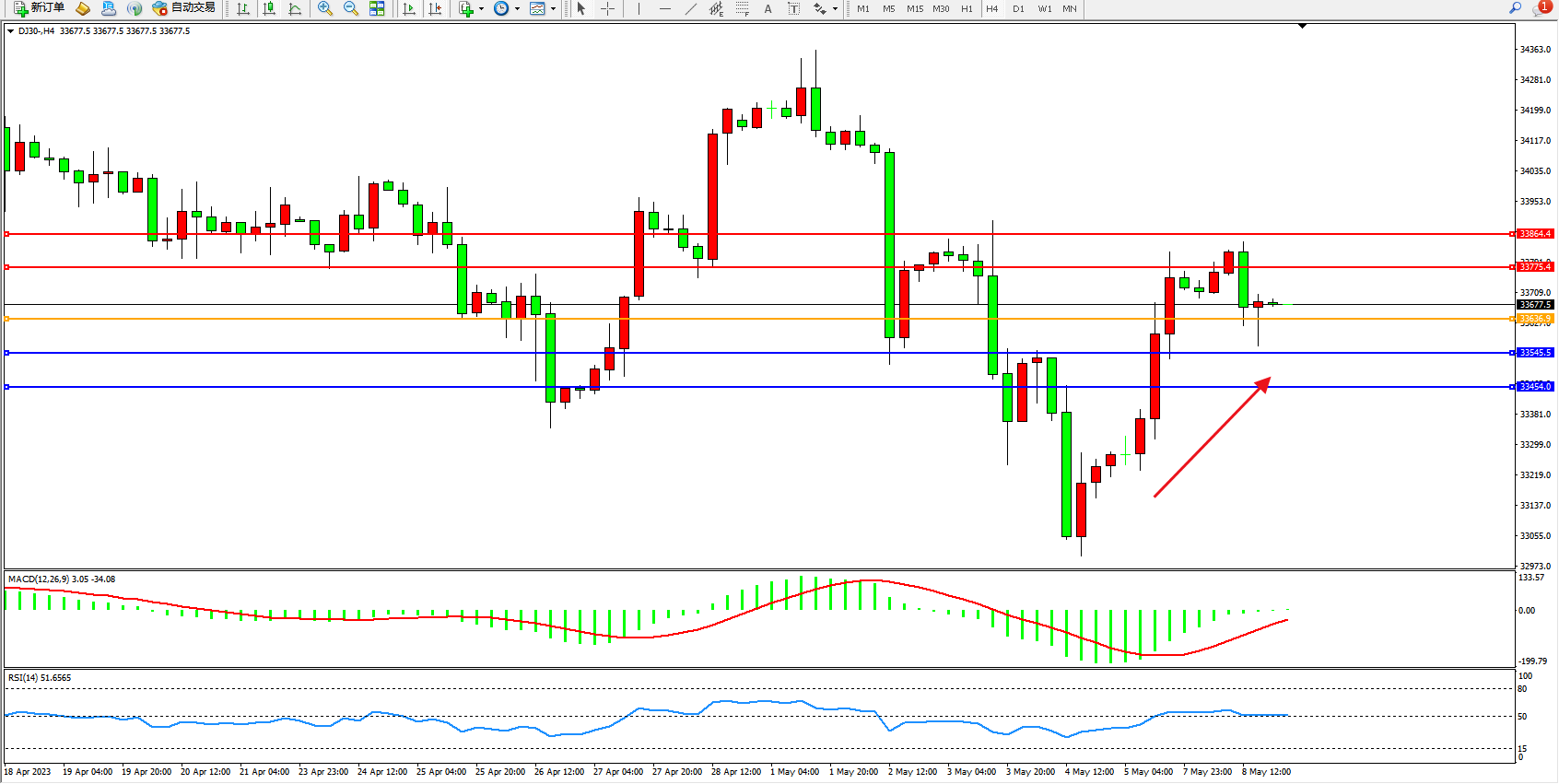道琼斯指数5月8日(周一)收盘下跌55.83点,跌幅0.17%,报33618.55点;市场消息,美国众议院共和党人提出了提高债务上限法案,即《限制、储蓄和增长法案》。如果拜登不签署该法案或拒绝谈判,经济将受到打击。