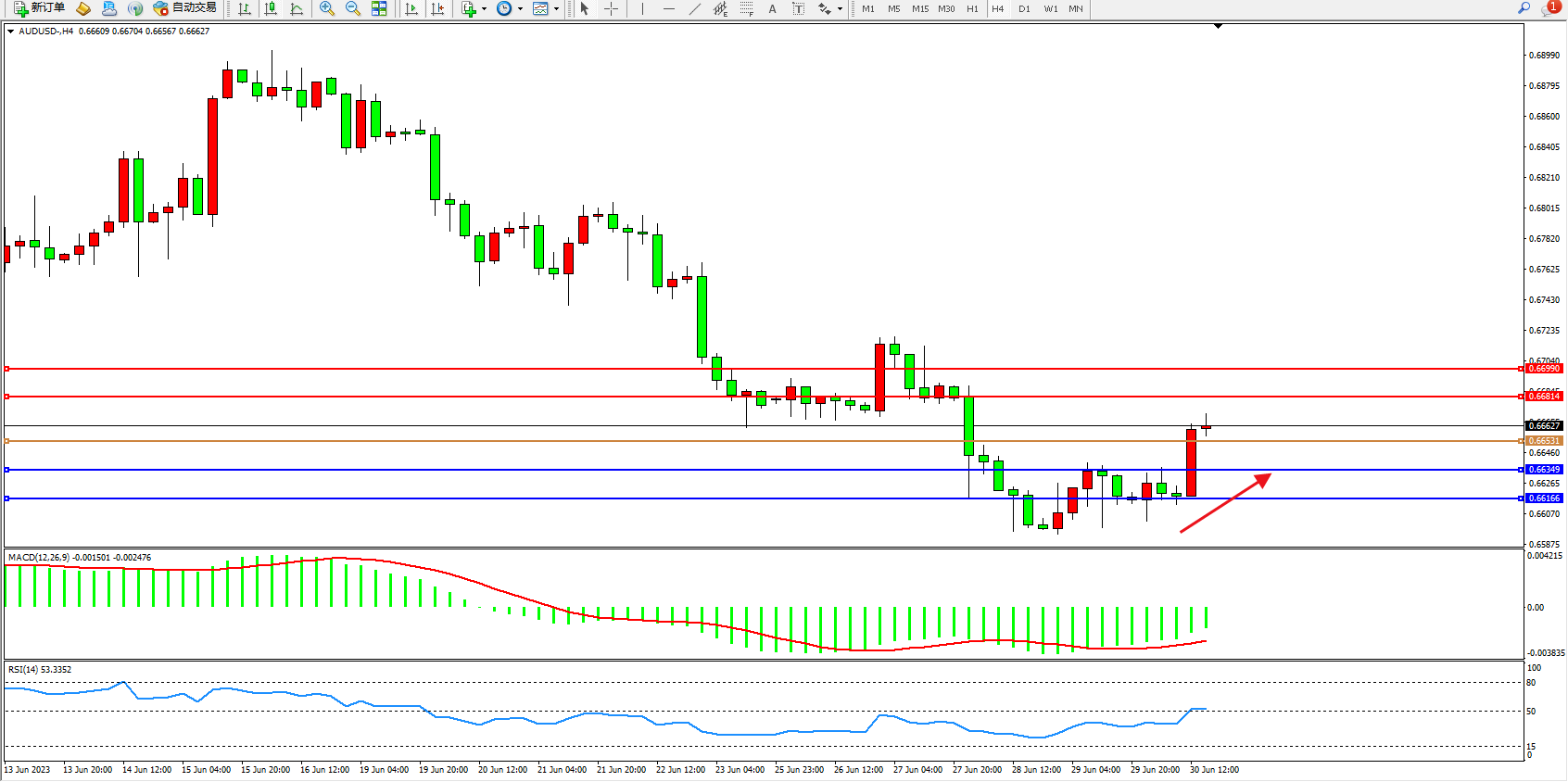 交易策略:0.66531上方看涨,目标0.66814 0.66990