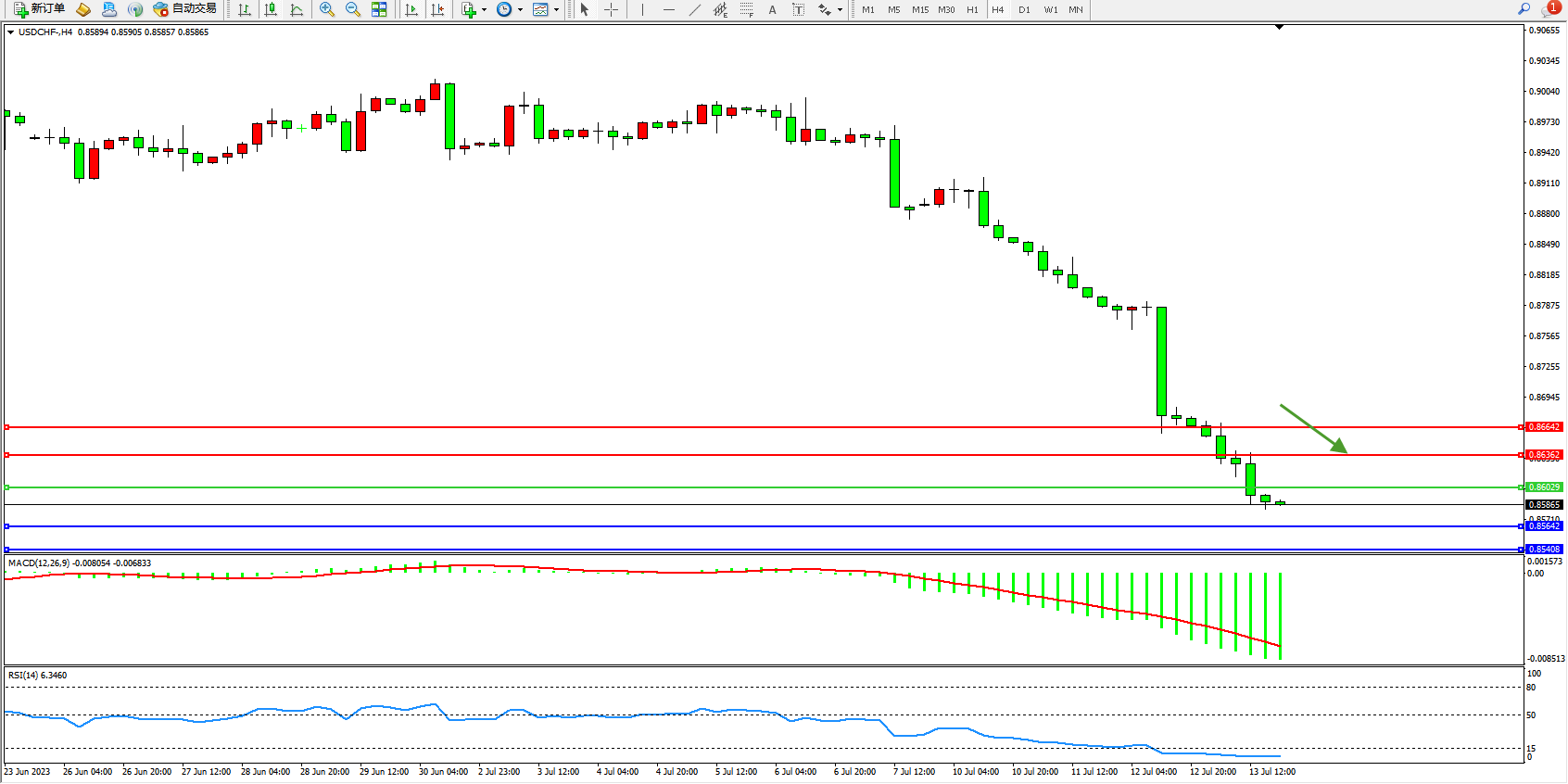 交易策略:0.86029下方看跌,目标0.85642  0.85408