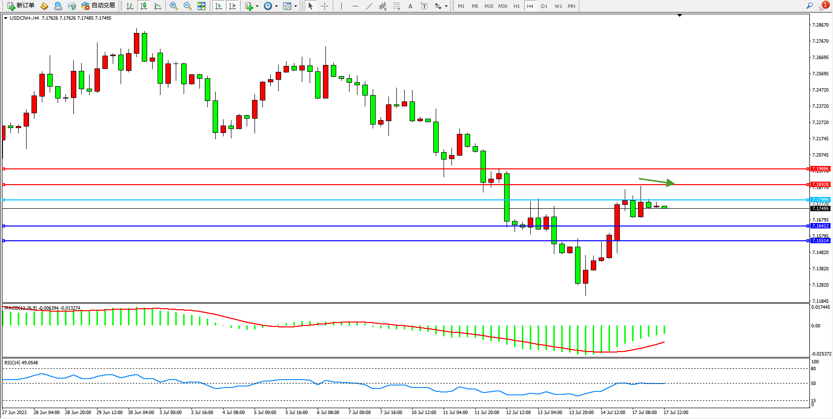 备选策略:7.17999上方看涨,目标7.18928  7.19886