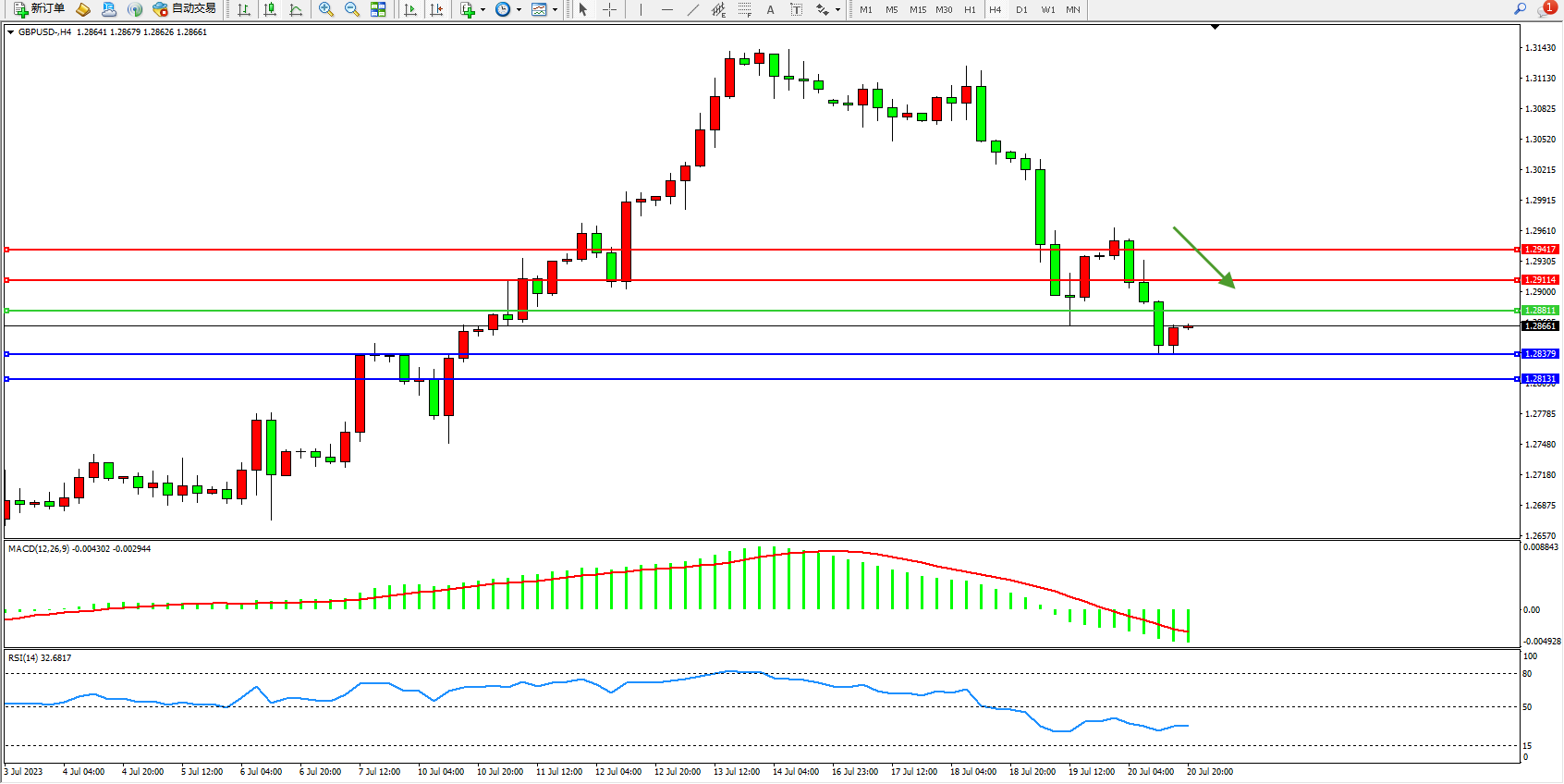 交易策略:1.28811下方看跌,目标1.28379  1.28131