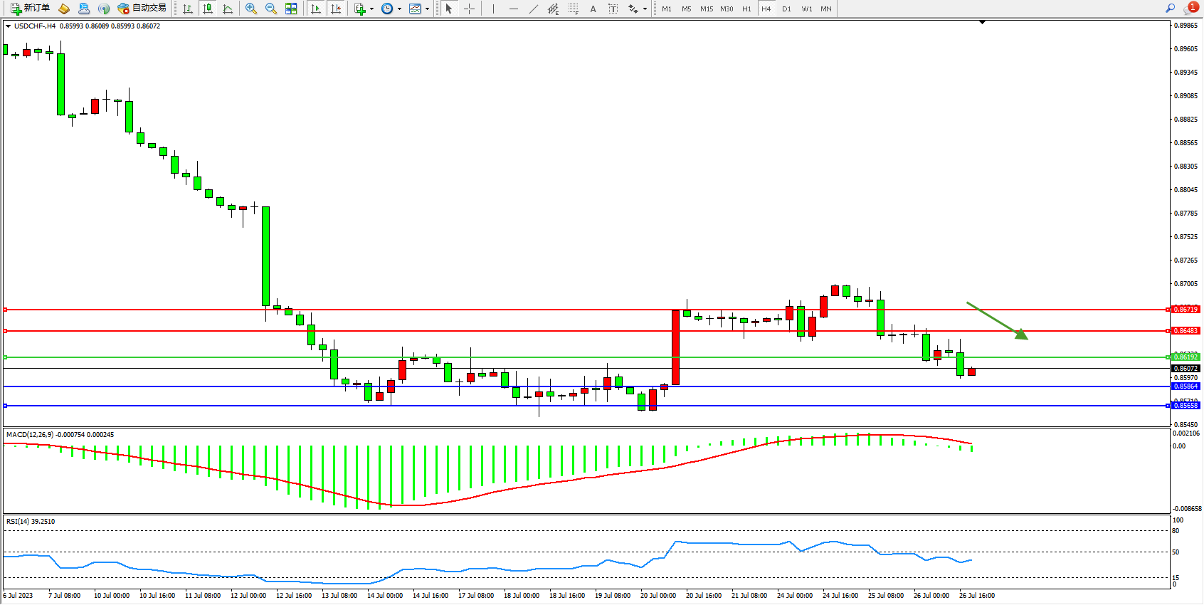 美元兑瑞郎维持0.86072附近震荡,瑞士投资者信心在7月份进一步下降,因为市场情绪显示经济将进一步下滑。瑞士的主要贸易伙伴,即美国和欧元区的前景也更加黯淡,这导致未来几个月的出口预期下降。