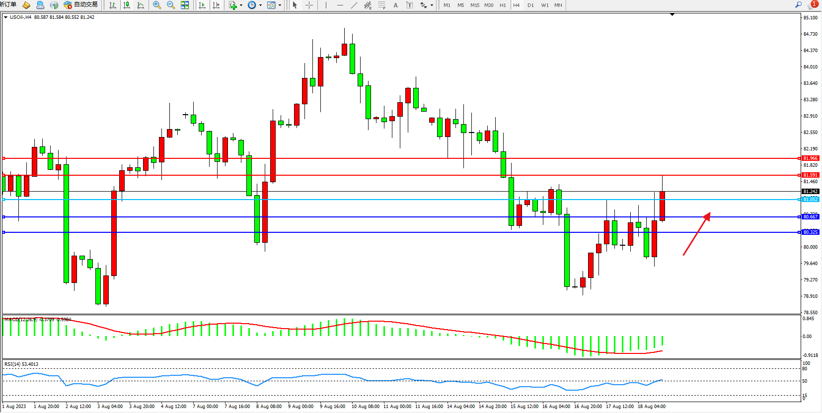 交易策略:81.052上方看涨,目标81.591  81.966