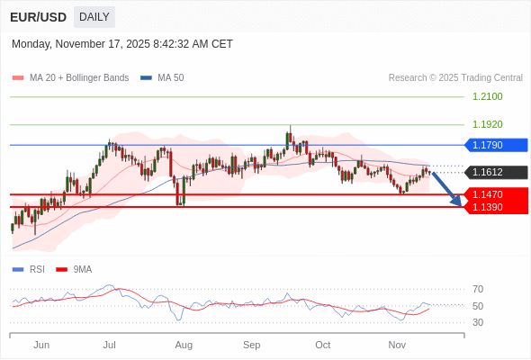 在 1.1790 之下,看跌,目标价位为 1.1470 ,然后为 1.1390 。