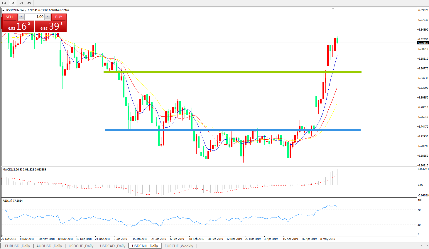 技术面简析:日线均线呈有序多头排列看多,MACD0轴上方运行且动能柱0轴上方持续放量RSI快速走升后超买区域走平,汇价强力上攻后维持整理态势,预计短期汇价有进一步上行空间,重点关注中美贸易争端后续进展