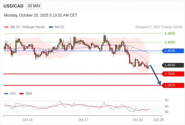 在 1.4035 之下,看跌,目标价位为 1.3995 ,然后为 1.3975 。