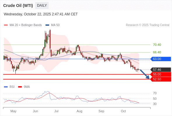 交易策略: 在 63.00 之下,看跌,目标价位为 55.00 ,然后为 52.50 。