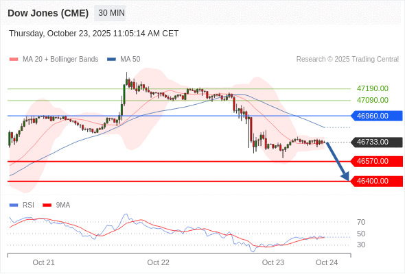 在 46960.00 之下,看跌,目标价位为 46570.00 ,然后为 46400.00 。