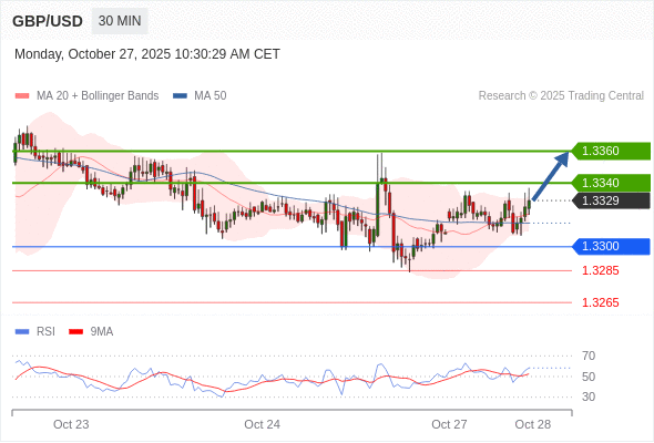 在 1.3300 之上,看涨,目标价位为 1.3340 ,然后为 1.3360 。