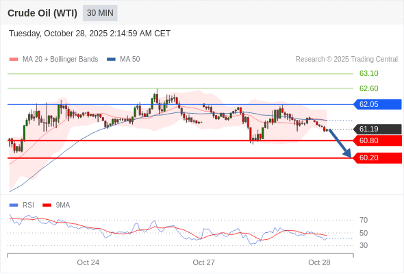 交易策略: 在 62.05 之下,看跌,目标价位为 60.80 ,然后为 60.20 。