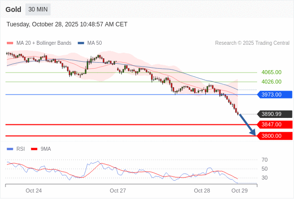 在 3973.00 之下,看跌,目标价位为 3847.00 ,然后为 3800.00 。