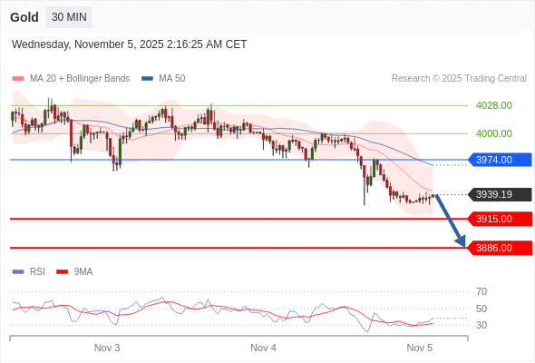在 3974.00 之下,看跌,目标价位为 3915.00 ,然后为 3886.00 。