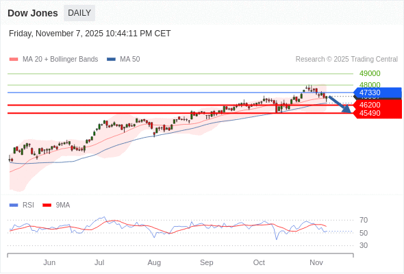 在 47330 之下,看跌,目标价位为 46200 ,然后为 45490 。