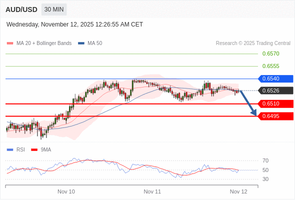 在 0.6540 之下,看跌,目标价位为 0.6510 ,然后为 0.6495 。