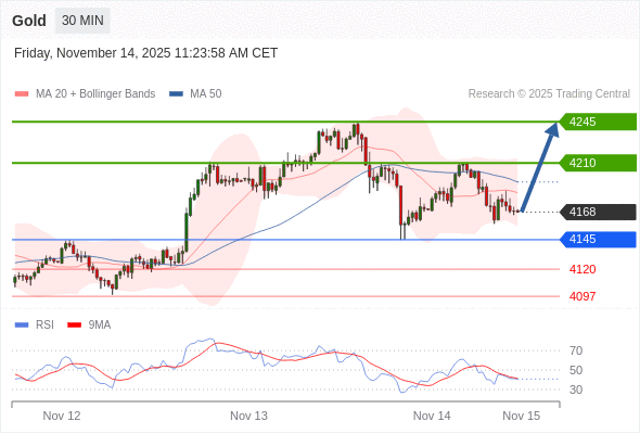 在 4145 之上,看涨,目标价位为 4210 ,然后为 4245 。