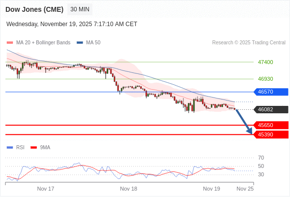 在 46570 之下,看跌,目标价位为 45650 ,然后为 45390 。