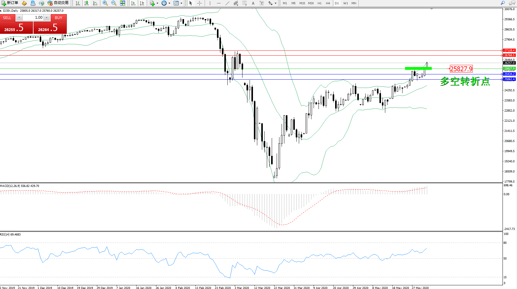 道琼斯指数6月3日(周三)收盘上涨527.20点,涨幅2.05%,报26269.89点。美国ADP就业数据大幅好于预期,随着许多州开始分阶段恢复营业,失业人数可能已在4月份达到峰值。但经济复苏题材是主要影响因素,非美纷纷走高。更多政府刺激措施有望出台,且全球经济将迎来复苏,令投资者更加大胆地增持风险较高资产。2019年美联储突然调转了政策方向实施了三次降息,同时随着疫情蔓延2020年美联储更是出台了史无前例的巨量刺激措施,这使得美国股市逐渐从史上最大的暴跌中反弹。美联储的持续宽松最终或导致美元的崩盘以及股市更大的泡沫。