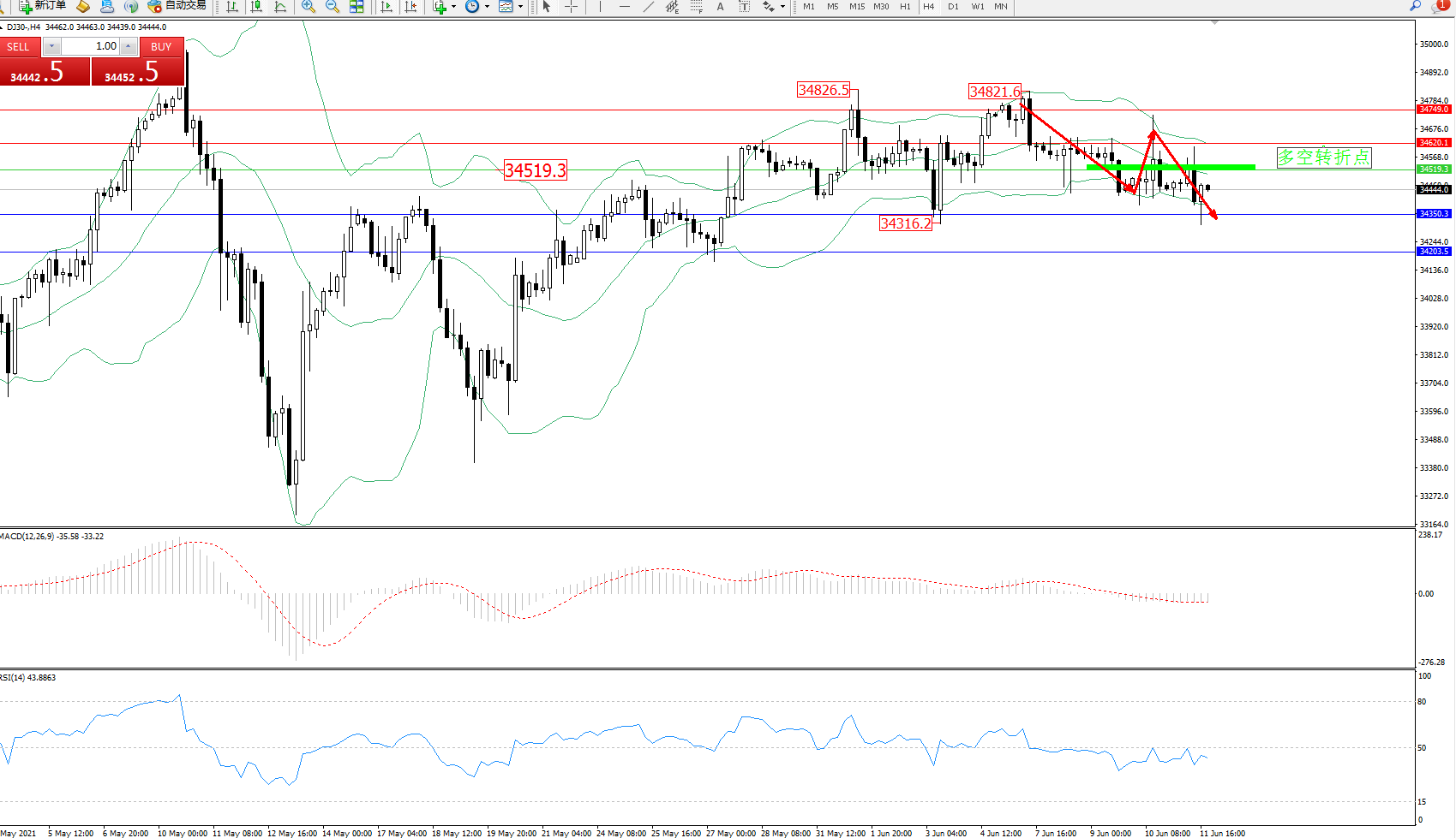 道琼斯指数6月11日(周五)收盘上涨13.76点,涨幅0.04%,报34480.00点;美股收盘道琼斯工业平均指数基本持平,投资者越发认为通胀蹿升的情况不会持续太久,美联储将维持宽松政策。金融、原材料和工业等周期性板块本周表现落后大盘。5月美国非农就业报告显示经济可能还需要更多时间才能完全复苏,周期性板块的落后表现可能是暂时的,尽管通胀可能正在触顶,但也可能在高于过去20年的水平上企稳,加之经济正在复苏,这将有助于经济增长和企稳,尽管中长期通胀水平可能更高。继续认为周期性板块和价值板块将受益于这一趋势。另外投资者也在评估围绕拜登基建提案的两党谈判情况。投资者正等待美联储下周政策会议,寻找有关资产购买计划和利率政策的下一步行动线索。