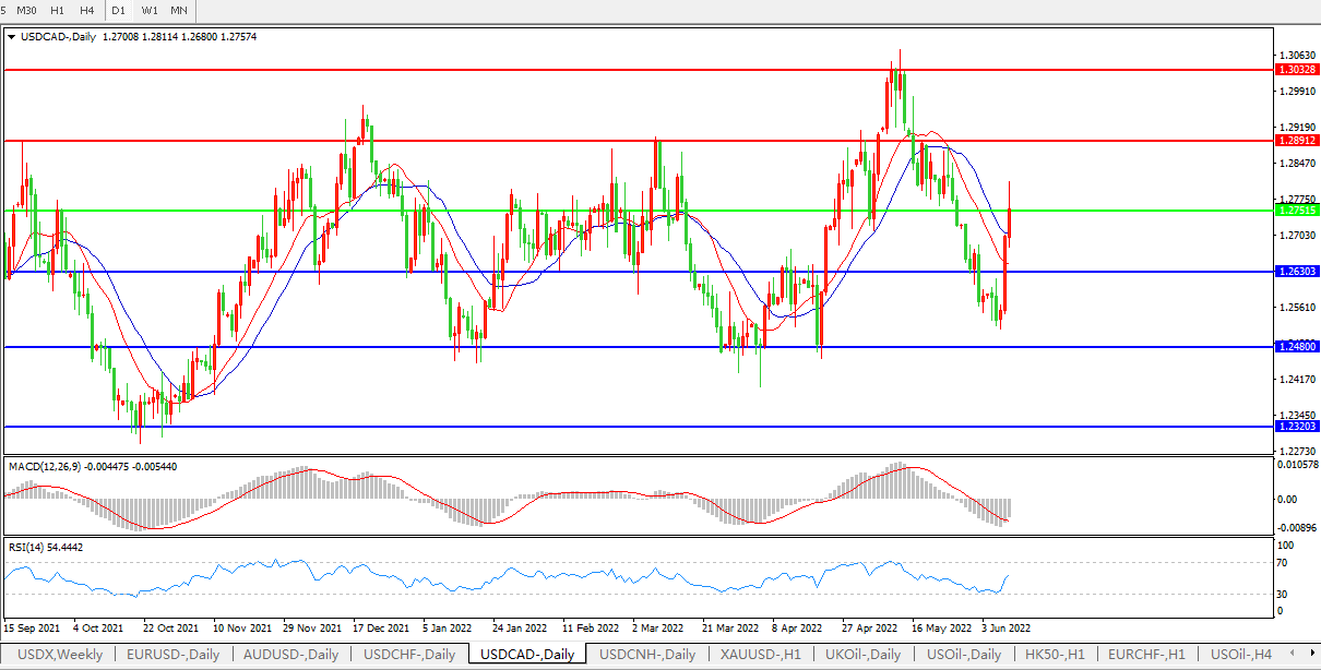 美元兑加元涨0.66%至1.2780;加拿大5月新增就业超预期,失业率降至5.1%,工资涨幅超预期;美元兑加元盘中一度上涨0.9%。
