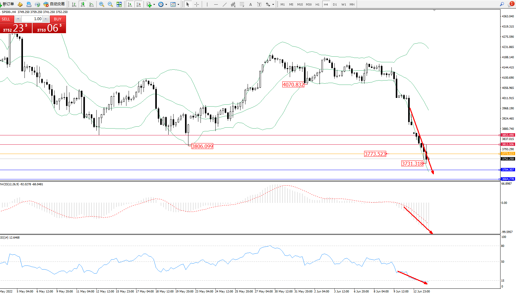 标普500指数6月13日(周一)收盘下跌151.15点,跌幅3.88%,报3749.68点;美联储委员考虑“以高于预期的75个基点的加息幅度震惊市场”,这有助于增强市场对此举的预期。