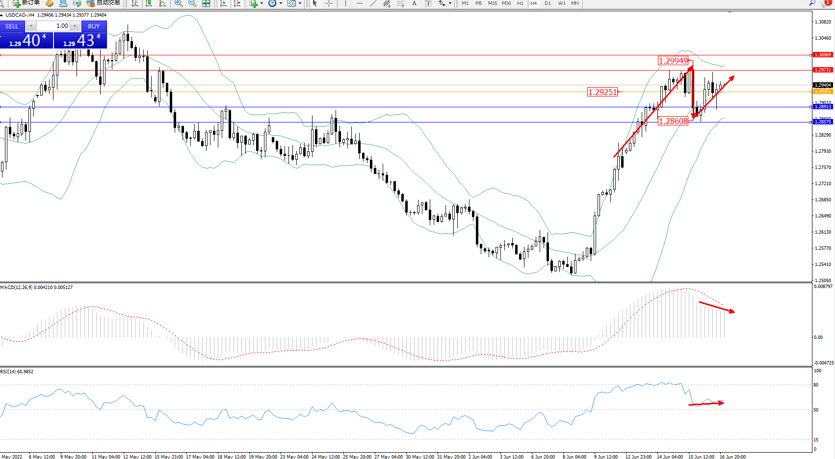 美元兑加元维持1.29404附近震荡,加拿大4月批发销售月率录得-0.5%,为2021年7月以来最大降幅。