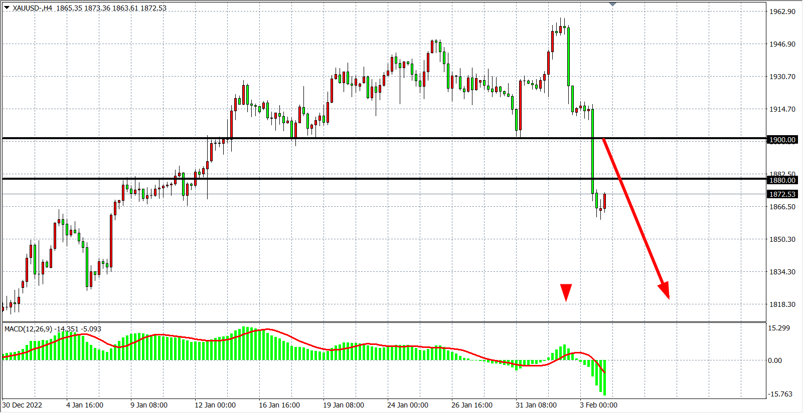 周五(2月3日)公布的非农数据爆表,表现超预期强劲,黄金跌穿1900美元
