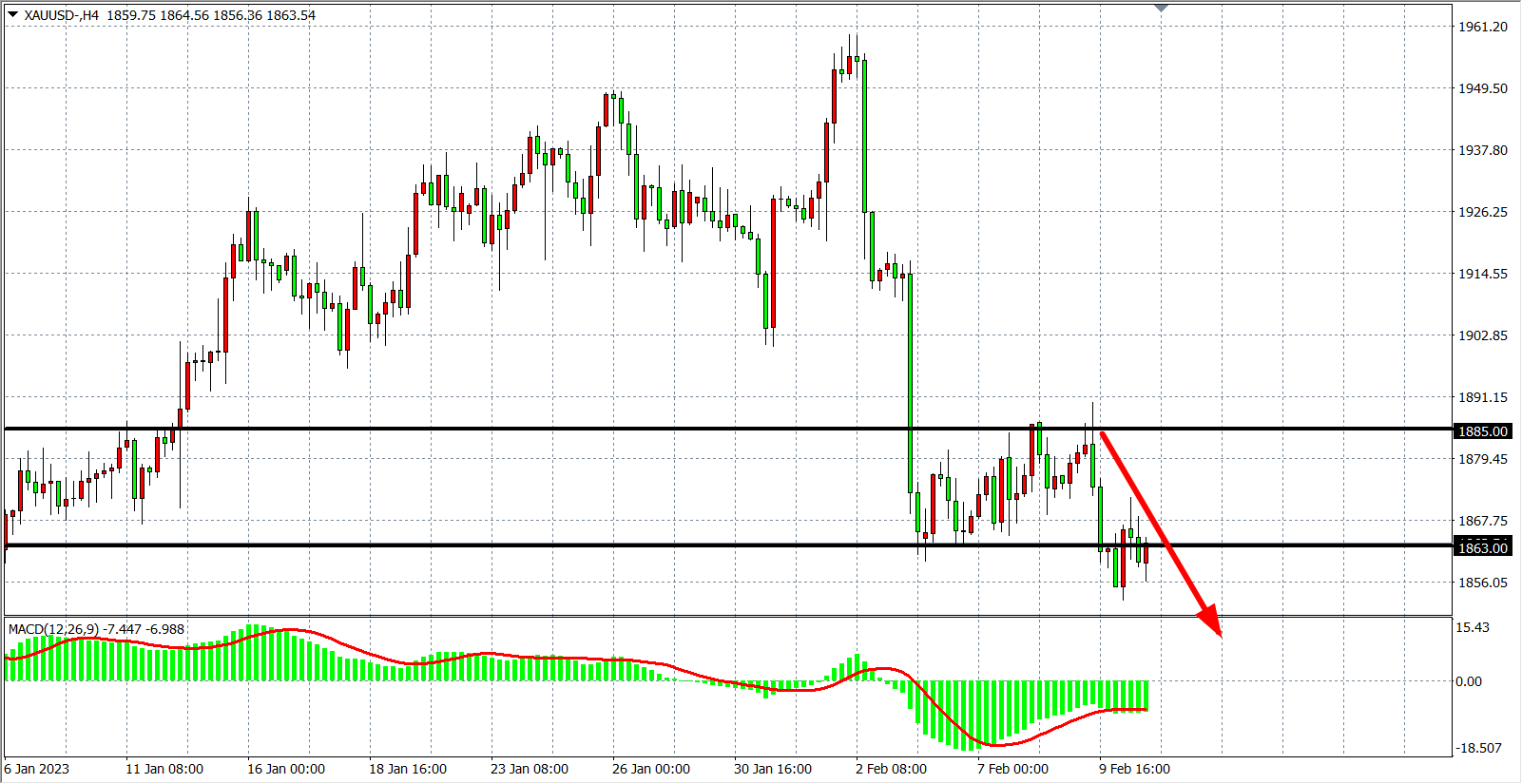 交易策略:在1885.00 之下看跌,目标1850.00         1830.00